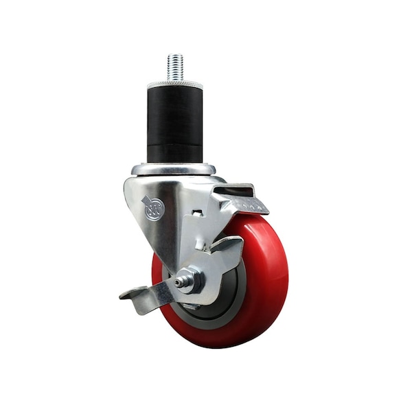 3.5'' Red Poly Swivel 1-3/4'' Expanding Stem Caster with Brake