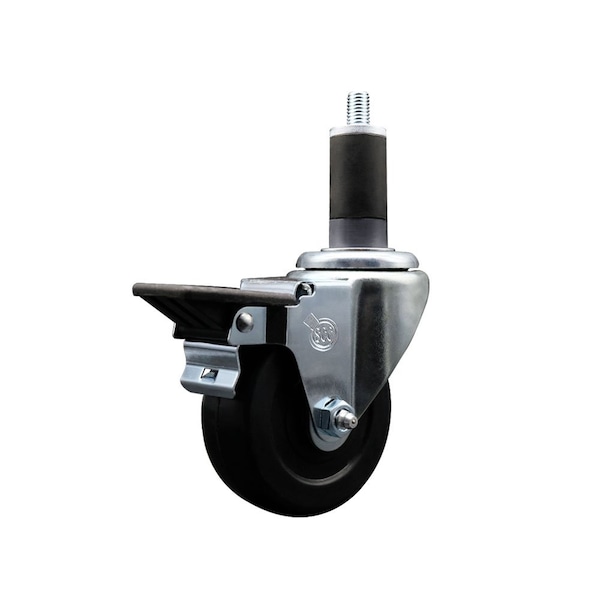 Listing is for one 1 Service Caster Series #20 1-1/4'' expanding stem swivel caster with a 3-1/2'' diameter by 1-1/4'' wide black soft rubber wheel and a posi locking brake capable of supporting 200 lbs./caster. When searching for a reliable and durable solution to your caster needs, look no further than the Service Caster Series 20 expanding stem soft rubber wheel casters. The Series #20 features an innovative expanding stem that can easily adapt to the inside diameter of the opening, allowing for a secure fit in round or square tubes. Simply tighten the topmost knurled nut to compress the rubber for a snug fit. For added security, further compress the rubber with a wrench via the nut under the swivel raceway. Finely crafted with a bright zinc plated finish, heat-treated ball bearing raceway, and a soft rubber wheel, this versatile caster is ideal for work tables, shop projects, or any equipment with round or square tube legs. Service Caster is unsurpassed in quality, reliability, and excellent customer service. Count on us to move you forward.