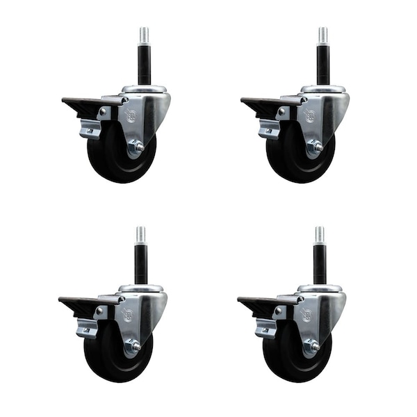 Listing is for a set of four 4 Service Caster Series #20 3/4'' expanding stem swivel casters with 3-1/2'' diameter by 1-1/4'' wide black soft rubber wheels and posi locking brakes capable of supporting a total weight of 800 lbs. 200 lbs./caster.. When searching for a reliable and durable solution to your caster needs, look no further than the Service Caster Series 20 expanding stem soft rubber wheel casters. The Series #20 features an innovative expanding stem that can easily adapt to the inside diameter of the opening, allowing for a secure fit in round or square tubes. Simply tighten the topmost knurled nut to compress the rubber for a snug fit. For added security, further compress the rubber with a wrench via the nut under the swivel raceway. Finely crafted with a bright zinc plated finish, heat-treated ball bearing raceway, and a soft rubber wheel, this versatile caster is ideal for work tables, shop projects, or any equipment with round or square tube legs. Service Caster is unsurpassed in quality, reliability, and excellent customer service. Count on us to move you forward.