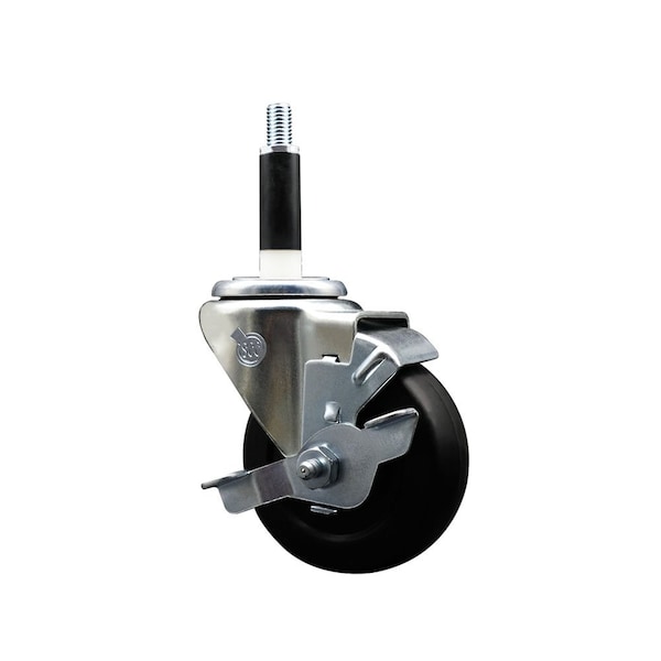 Listing is for one 1 Service Caster Series #20 7/8'' expanding stem swivel caster with a 3-1/2'' diameter by 1-1/4'' wide black soft rubber wheel and a top locking brake capable of supporting 200 lbs./caster. When searching for a reliable and durable solution to your caster needs, look no further than the Service Caster Series 20 expanding stem soft rubber wheel casters. The Series #20 features an innovative expanding stem that can easily adapt to the inside diameter of the opening, allowing for a secure fit in round or square tubes. Simply tighten the topmost knurled nut to compress the rubber for a snug fit. For added security, further compress the rubber with a wrench via the nut under the swivel raceway. Finely crafted with a bright zinc plated finish, heat-treated ball bearing raceway, and a soft rubber wheel, this versatile caster is ideal for work tables, shop projects, or any equipment with round or square tube legs. Service Caster is unsurpassed in quality, reliability, and excellent customer service. Count on us to move you forward.