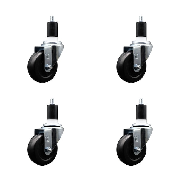 Listing is for a set of four 4 Service Caster Series #20 1-1/2'' expanding stem swivel casters with 3-1/2'' diameter by 1-1/4'' wide black soft rubber wheels capable of supporting a total weight of 800 lbs. 200 lbs./caster.. When searching for a reliable and durable solution to your caster needs, look no further than the Service Caster Series 20 expanding stem soft rubber wheel casters. The Series #20 features an innovative expanding stem that can easily adapt to the inside diameter of the opening, allowing for a secure fit in round or square tubes. Simply tighten the topmost knurled nut to compress the rubber for a snug fit. For added security, further compress the rubber with a wrench via the nut under the swivel raceway. Finely crafted with a bright zinc plated finish, heat-treated ball bearing raceway, and a soft rubber wheel, this versatile caster is ideal for work tables, shop projects, or any equipment with round or square tube legs. Service Caster is unsurpassed in quality, reliability, and excellent customer service. Count on us to move you forward.