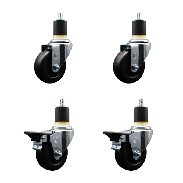 3.5'' Soft Rubber Wheel Swivel 1-7/8'' Expanding Stem Caster Set 2 Brakes, 4PK