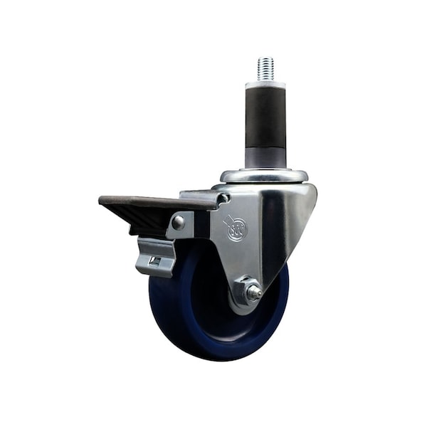 Listing is for one 1 Service Caster Series #20 1-1/4'' expanding stem swivel caster with a 3-1/2'' diameter by 1-1/4'' wide blue solid polyurethane wheel and a posi locking brake capable of supporting 300 lbs./caster. When searching for a reliable and durable solution to your caster needs, look no further than the Service Caster Series 20 expanding stem solid polyurethane wheel casters. The Series #20 features an innovative expanding stem that can easily adapt to the inside diameter of the opening, allowing for a secure fit in round or square tubes. Simply tighten the topmost knurled nut to compress the rubber for a snug fit. For added security, further compress the rubber with a wrench via the nut under the swivel raceway. Finely crafted with a bright zinc plated finish, heat-treated ball bearing raceway, and a solid polyurethane wheel, this versatile caster is ideal for work tables, shop projects, or any equipment with round or square tube legs. Service Caster is unsurpassed in quality, reliability, and excellent customer service. Count on us to move you forward.
