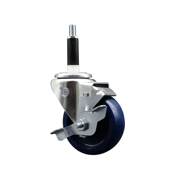 Listing is for one 1 Service Caster Series #20 7/8'' expanding stem swivel caster with a 3-1/2'' diameter by 1-1/4'' wide blue solid polyurethane wheel and a top locking brake capable of supporting 300 lbs./caster. When searching for a reliable and durable solution to your caster needs, look no further than the Service Caster Series 20 expanding stem solid polyurethane wheel casters. The Series #20 features an innovative expanding stem that can easily adapt to the inside diameter of the opening, allowing for a secure fit in round or square tubes. Simply tighten the topmost knurled nut to compress the rubber for a snug fit. For added security, further compress the rubber with a wrench via the nut under the swivel raceway. Finely crafted with a bright zinc plated finish, heat-treated ball bearing raceway, and a solid polyurethane wheel, this versatile caster is ideal for work tables, shop projects, or any equipment with round or square tube legs. Service Caster is unsurpassed in quality, reliability, and excellent customer service. Count on us to move you forward.
