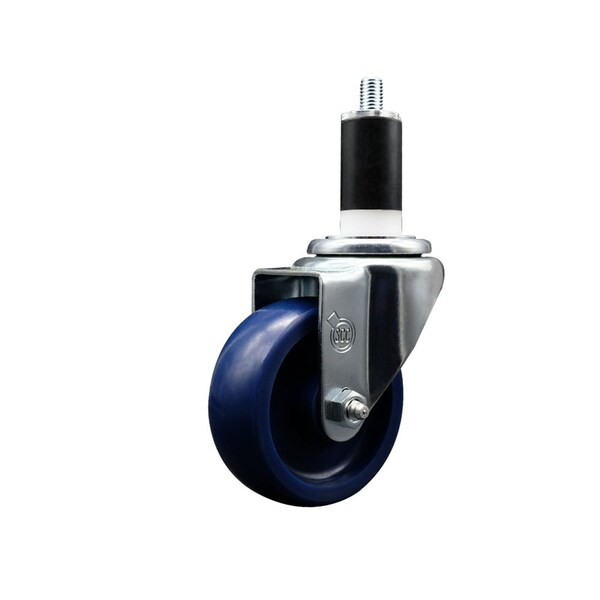 Listing is for one 1 Service Caster Series #20 1-3/8'' expanding stem swivel caster with a 3-1/2'' diameter by 1-1/4'' wide blue solid polyurethane wheel capable of supporting 300 lbs./caster. When searching for a reliable and durable solution to your caster needs, look no further than the Service Caster Series 20 expanding stem solid polyurethane wheel casters. The Series #20 features an innovative expanding stem that can easily adapt to the inside diameter of the opening, allowing for a secure fit in round or square tubes. Simply tighten the topmost knurled nut to compress the rubber for a snug fit. For added security, further compress the rubber with a wrench via the nut under the swivel raceway. Finely crafted with a bright zinc plated finish, heat-treated ball bearing raceway, and a solid polyurethane wheel, this versatile caster is ideal for work tables, shop projects, or any equipment with round or square tube legs. Service Caster is unsurpassed in quality, reliability, and excellent customer service. Count on us to move you forward.