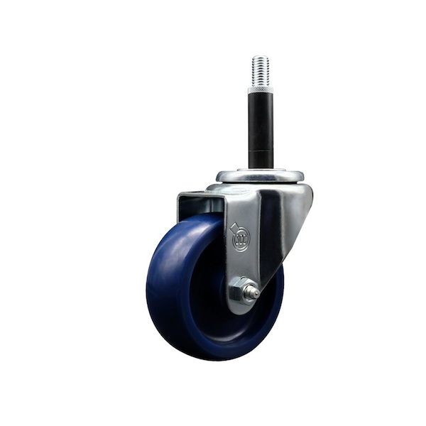 Listing is for one 1 Service Caster Series #20 3/4'' expanding stem swivel caster with a 3-1/2'' diameter by 1-1/4'' wide blue solid polyurethane wheel capable of supporting 300 lbs./caster. When searching for a reliable and durable solution to your caster needs, look no further than the Service Caster Series 20 expanding stem solid polyurethane wheel casters. The Series #20 features an innovative expanding stem that can easily adapt to the inside diameter of the opening, allowing for a secure fit in round or square tubes. Simply tighten the topmost knurled nut to compress the rubber for a snug fit. For added security, further compress the rubber with a wrench via the nut under the swivel raceway. Finely crafted with a bright zinc plated finish, heat-treated ball bearing raceway, and a solid polyurethane wheel, this versatile caster is ideal for work tables, shop projects, or any equipment with round or square tube legs. Service Caster is unsurpassed in quality, reliability, and excellent customer service. Count on us to move you forward.