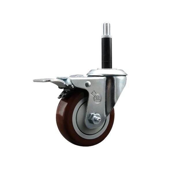 Listing is for one 1 Service Caster Series #20 3/4'' expanding stem stainless steel swivel caster with a 3-1/2'' diameter by 1-1/4'' wide maroon polyurethane wheel and a total locking brake capable of supporting 300 lbs./caster. When searching for a reliable and durable solution to your caster needs, look no further than the Service Caster Series 20 expanding stem maroon polyurethane wheel casters. The Series #20 features an innovative expanding stem that can easily adapt to the inside diameter of the opening, allowing for a secure fit in round or square tubes. Simply tighten the topmost knurled nut to compress the rubber for a snug fit. For added security, further compress the rubber with a wrench via the nut under the swivel raceway. Finely crafted with a bright zinc plated finish, heat-treated ball bearing raceway, and a maroon polyurethane wheel, this versatile caster is ideal for work tables, shop projects, or any equipment with round or square tube legs. Service Caster is unsurpassed in quality, reliability, and excellent customer service. Count on us to move you forward.