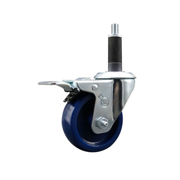Listing is for one 1 Service Caster Series #20 1'' expanding stem stainless steel swivel caster with a 3-1/2'' diameter by 1-1/4'' wide blue solid polyurethane wheel and a total locking brake capable of supporting 300 lbs./caster. When searching for a reliable and durable solution to your caster needs, look no further than the Service Caster Series 20 expanding stem solid polyurethane wheel casters. The Series #20 features an innovative expanding stem that can easily adapt to the inside diameter of the opening, allowing for a secure fit in round or square tubes. Simply tighten the topmost knurled nut to compress the rubber for a snug fit. For added security, further compress the rubber with a wrench via the nut under the swivel raceway. Finely crafted with a bright zinc plated finish, heat-treated ball bearing raceway, and a solid polyurethane wheel, this versatile caster is ideal for work tables, shop projects, or any equipment with round or square tube legs. Service Caster is unsurpassed in quality, reliability, and excellent customer service. Count on us to move you forward.