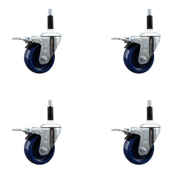 3.5'' SS Solid Poly Swivel 7/8'' Expanding Stem Caster Set Total Lock Brake, 4PK