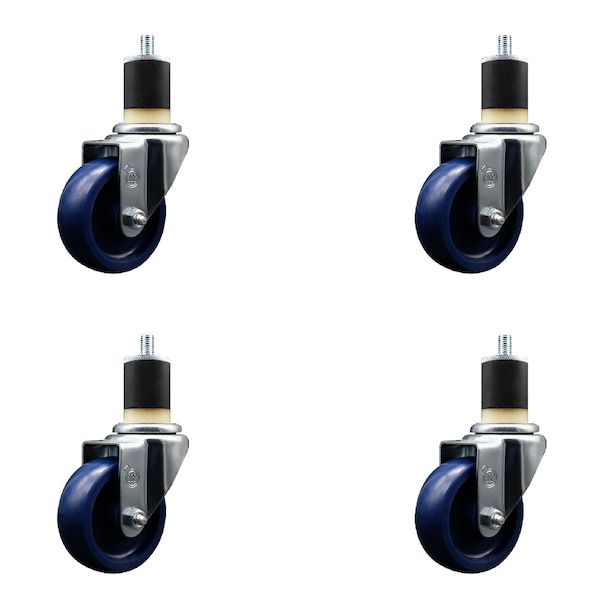 3.5'' SS Solid Poly Wheel Swivel 1-7/8'' Expanding Stem Caster Set, 4PK