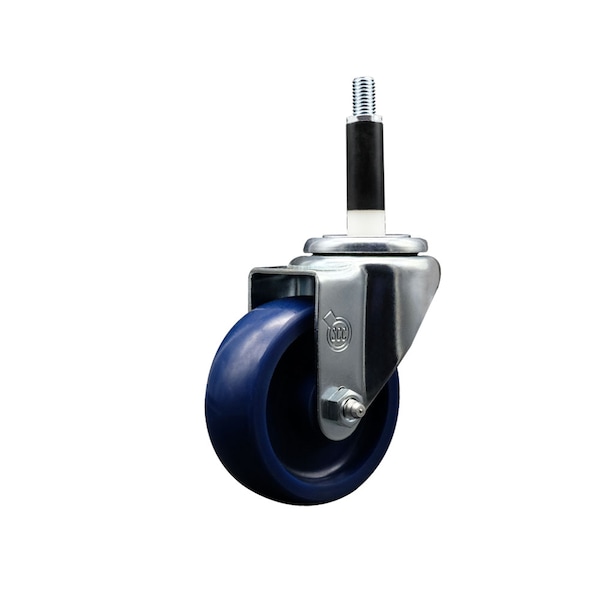 Listing is for one 1 Service Caster Series #20 7/8'' expanding stem stainless steel swivel caster with a 3-1/2'' diameter by 1-1/4'' wide blue solid polyurethane wheel capable of supporting 300 lbs./caster. When searching for a reliable and durable solution to your caster needs, look no further than the Service Caster Series 20 expanding stem solid polyurethane wheel casters. The Series #20 features an innovative expanding stem that can easily adapt to the inside diameter of the opening, allowing for a secure fit in round or square tubes. Simply tighten the topmost knurled nut to compress the rubber for a snug fit. For added security, further compress the rubber with a wrench via the nut under the swivel raceway. Finely crafted with a bright zinc plated finish, heat-treated ball bearing raceway, and a solid polyurethane wheel, this versatile caster is ideal for work tables, shop projects, or any equipment with round or square tube legs. Service Caster is unsurpassed in quality, reliability, and excellent customer service. Count on us to move you forward.