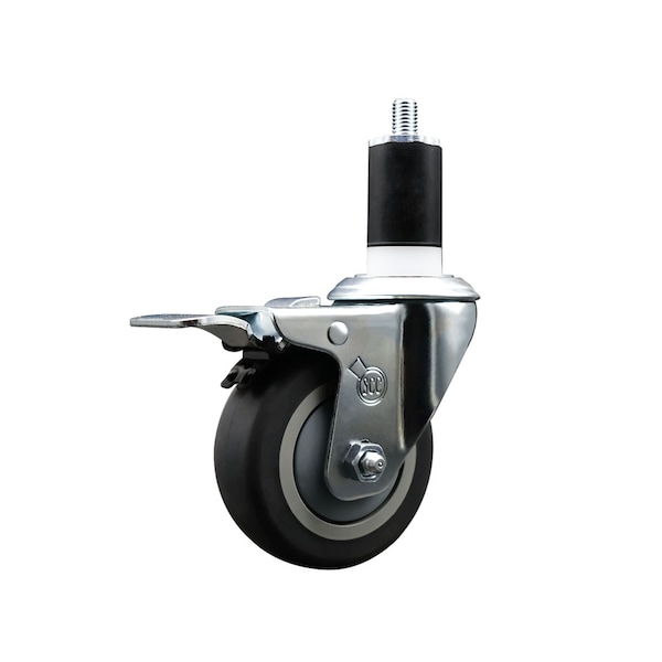 Listing is for one 1 Service Caster Series #20 1-1/2'' expanding stem swivel caster with a 3-1/2'' diameter by 1-1/4'' wide thermoplastic rubber wheel and a total locking brake capable of supporting 230 lbs./caster. When searching for a reliable and durable solution to your caster needs, look no further than the Service Caster Series 20 expanding stem thermoplastic rubber wheel casters. The Series #20 features an innovative expanding stem that can easily adapt to the inside diameter of the opening, allowing for a secure fit in round or square tubes. Simply tighten the topmost knurled nut to compress the rubber for a snug fit. For added security, further compress the rubber with a wrench via the nut under the swivel raceway. Finely crafted with a bright zinc plated finish, heat-treated ball bearing raceway, and a thermoplastic rubber wheel, this versatile caster is ideal for work tables, shop projects, or any equipment with round or square tube legs. Service Caster is unsurpassed in quality, reliability, and excellent customer service. Count on us to move you forward.