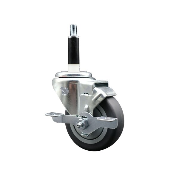 Listing is for one 1 Service Caster Series #20 7/8'' expanding stem swivel caster with a 3-1/2'' diameter by 1-1/4'' wide thermoplastic rubber wheel and a top locking brake capable of supporting 230 lbs./caster. When searching for a reliable and durable solution to your caster needs, look no further than the Service Caster Series 20 expanding stem thermoplastic rubber wheel casters. The Series #20 features an innovative expanding stem that can easily adapt to the inside diameter of the opening, allowing for a secure fit in round or square tubes. Simply tighten the topmost knurled nut to compress the rubber for a snug fit. For added security, further compress the rubber with a wrench via the nut under the swivel raceway. Finely crafted with a bright zinc plated finish, heat-treated ball bearing raceway, and a thermoplastic rubber wheel, this versatile caster is ideal for work tables, shop projects, or any equipment with round or square tube legs. Service Caster is unsurpassed in quality, reliability, and excellent customer service. Count on us to move you forward.