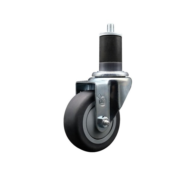 Listing is for one 1 Service Caster Series #20 1-5/8'' expanding stem swivel caster with a 3-1/2'' diameter by 1-1/4'' wide thermoplastic rubber wheel capable of supporting 230 lbs./caster. When searching for a reliable and durable solution to your caster needs, look no further than the Service Caster Series 20 expanding stem thermoplastic rubber wheel casters. The Series #20 features an innovative expanding stem that can easily adapt to the inside diameter of the opening, allowing for a secure fit in round or square tubes. Simply tighten the topmost knurled nut to compress the rubber for a snug fit. For added security, further compress the rubber with a wrench via the nut under the swivel raceway. Finely crafted with a bright zinc plated finish, heat-treated ball bearing raceway, and a thermoplastic rubber wheel, this versatile caster is ideal for work tables, shop projects, or any equipment with round or square tube legs. Service Caster is unsurpassed in quality, reliability, and excellent customer service. Count on us to move you forward.