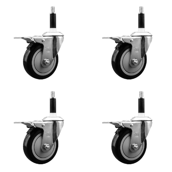 4'' Black Poly Swivel 7/8'' Expanding Stem Caster Set Total Lock Brake, 4PK
