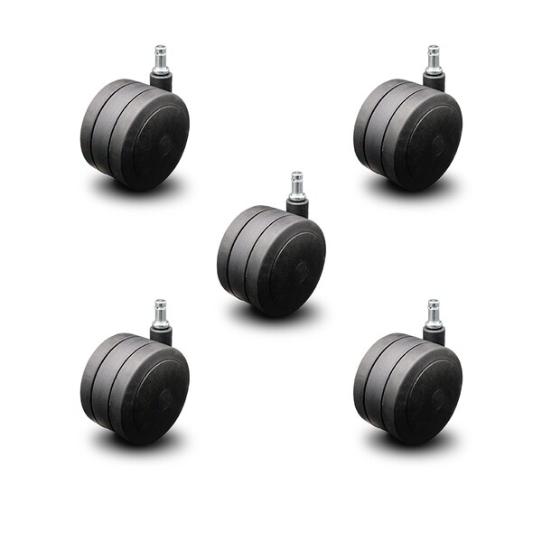 Listing is for five (5) 4" diameter black twin wheel thermoplastic rubber chair, light furniture and fixture casters with a 7/16" diameter x 7/8" length grip ring stem. Supports up to 225lbs per caster.When searching for a reliable, mobile solution to your furniture needs, consider Service Caster’s Series 02 thermoplastic rubber twin wheel casters. With dependable functionality these casters are the perfect solution as new or replacement parts for chairs, tables, medical carts, or other home and office furniture. These casters are excellent in floor protection and offer a easy rolling and quiet ride. An ideal replacement for standard hard nylon wheel casters, Service Caster's Series 02 thermoplastic rubber twin wheel casters and will not mark, mar, or scuff wood, tile, or any other hard surface. With the finest craftsmanship and quality materials, these casters are built solid and ready to roll. Service Caster is unsurpassed in quality, reliability, and excellent customer service. Count on us to move you forward.