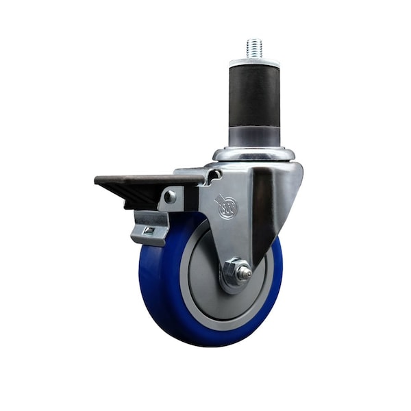 4'' Blue Poly Swivel 1-5/8'' Expanding Stem Caster with Brake