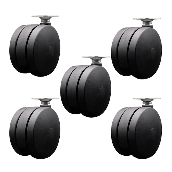 Listing is for 5 five 4'' diameter unhooded extra large heavy duty twin wheel nylon chair, light furniture and fixture casters witha 2-5/8'' diameter x 3-3/4'' top plate. Supports up to 175 lbs. per caster or 875 lbs. total. When searching for a reliable, mobile solution to your furniture needs, consider Service Caster's Series 02 nylon twin wheel casters. Combining dependable functionality with classic aesthetic, these twin wheel casters are the perfect solution as new or replacement parts for chairs, tables, medical carts, or other home and office furniture. Service Caster is unsurpassed in quality, reliability, and excellent customer service. Count on us to move you forward.
