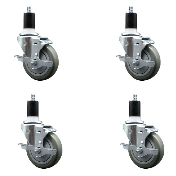 4'' Gray Poly Swivel 1-1/2'' Expanding Stem Caster Set with Brake, 4PK