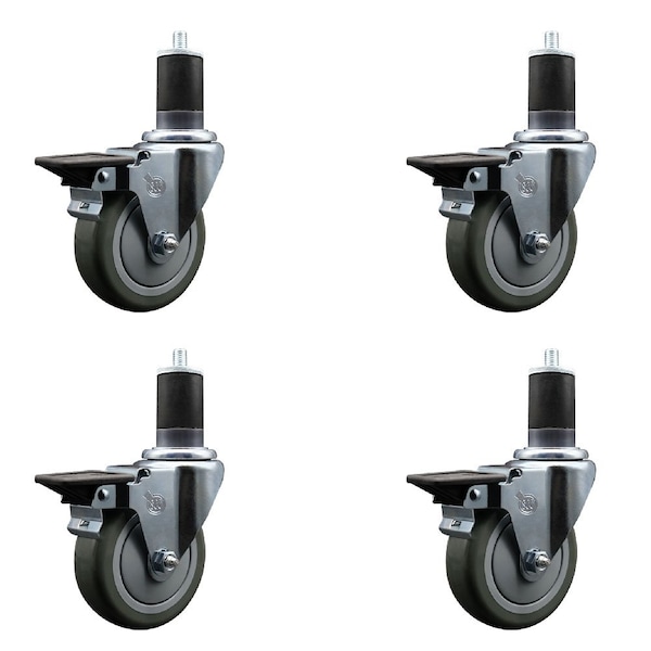 4'' Gray Poly Swivel 1-5/8'' Expanding Stem Caster Set with Brake, 4PK