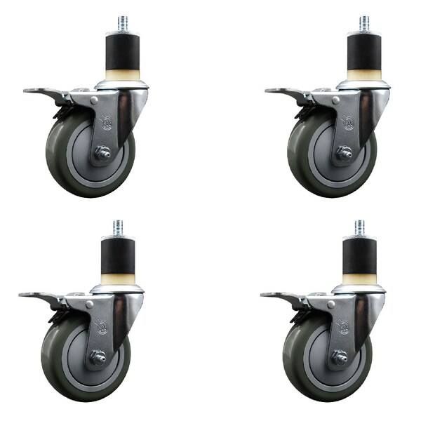 4'' Gray Poly Swivel 1-7/8'' Expanding Stem Caster Set Total Lock Brake, 4PK