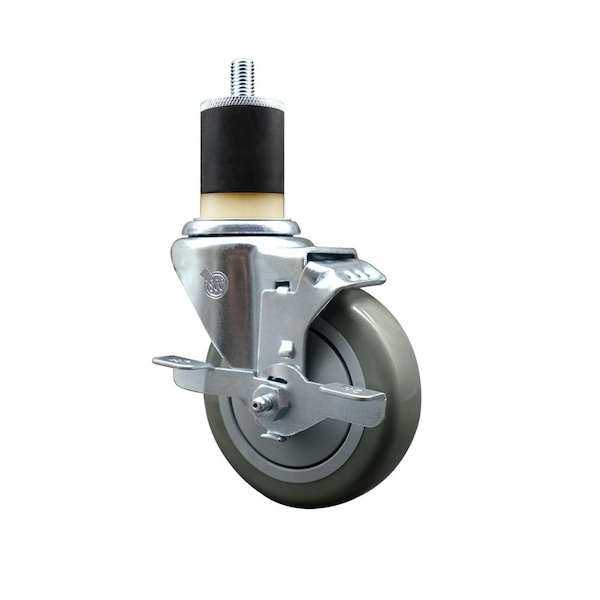 4'' Gray Poly Swivel 1-7/8'' Expanding Stem Caster with Brake