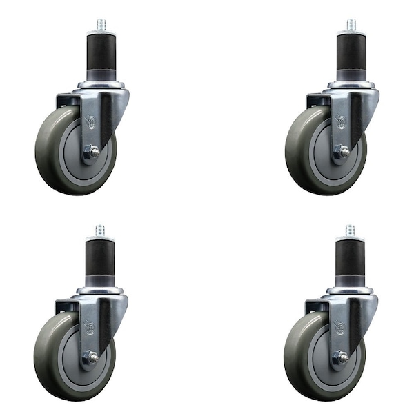 4'' Gray Poly Wheel Swivel 1-5/8'' Expanding Stem Caster Set, 4PK