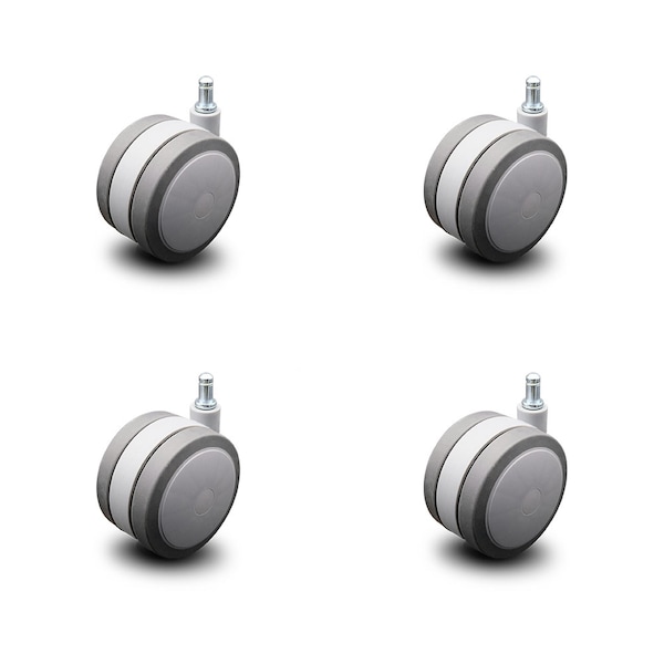 Listing is for four (4) 4" diameter gray twin wheel thermoplastic rubber chair, light furniture and fixture casters with a 7/16" diameter x 7/8" length grip ring stem. Supports up to 225lbs per caster.When searching for a reliable, mobile solution to your furniture needs, consider Service Caster’s Series 02 thermoplastic rubber twin wheel casters. With dependable functionality these casters are the perfect solution as new or replacement parts for chairs, tables, medical carts, or other home and office furniture. These casters are excellent in floor protection and offer a easy rolling and quiet ride. An ideal replacement for standard hard nylon wheel casters, Service Caster's Series 02 thermoplastic rubber twin wheel casters and will not mark, mar, or scuff wood, tile, or any other hard surface. With the finest craftsmanship and quality materials, these casters are built solid and ready to roll. Service Caster is unsurpassed in quality, reliability, and excellent customer service. Count on us to move you forward.