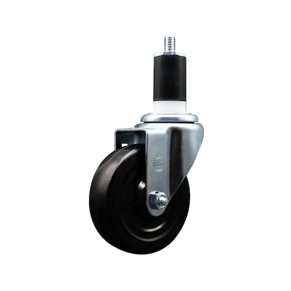 Listing is for one 1 Service Caster Series #20 1-1/2'' expanding stem swivel caster with a 4'' diameter by 1-1/4'' wide black hard rubber wheel capable of supporting 300 lbs./caster. When searching for a reliable and durable solution to your caster needs, look no further than the Service Caster Series 20 expanding stem hard rubber wheel casters. The Series #20 features an innovative expanding stem that can easily adapt to the inside diameter of the opening, allowing for a secure fit in round or square tubes. Simply tighten the topmost knurled nut to compress the rubber for a snug fit. For added security, further compress the rubber with a wrench via the nut under the swivel raceway. Finely crafted with a bright zinc plated finish, heat-treated ball bearing raceway, and a hard rubber wheel, this versatile caster is ideal for work tables, shop projects, or any equipment with round or square tube legs. Service Caster is unsurpassed in quality, reliability, and excellent customer service. Count on us to move you forward.