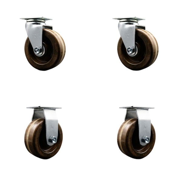 4'' High Temp Phenolic Caster Set with Bronze Bearings 2 Swivel 2 Rigid, 4PK