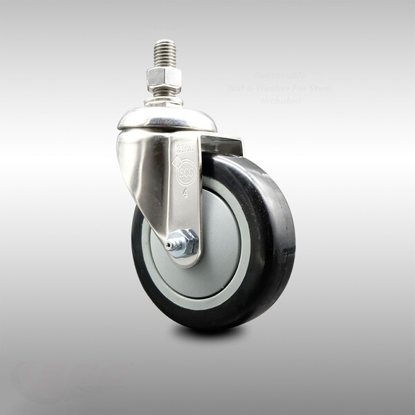 4 Inch 316SS Black Polyurethane Wheel Swivel 12mm Threaded Stem Caster SCC