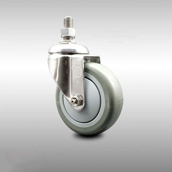 4 Inch 316SS Gray Polyurethane Wheel Swivel 10mm Threaded Stem Caster SCC