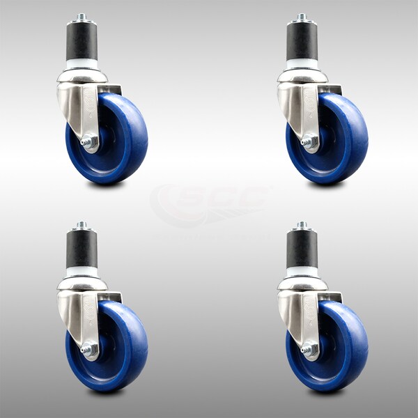 4 Inch 316SS Solid Polyurethane Swivel 1-3/4 Inch Expanding Stem Caster Set SCC