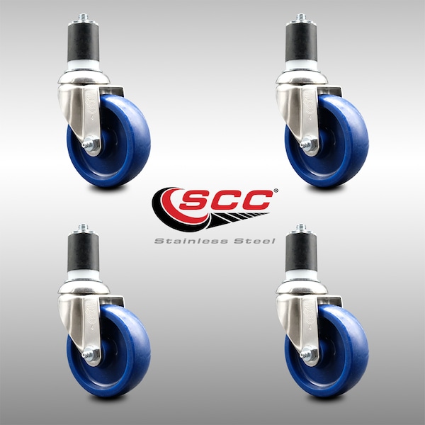 4 Inch 316SS Solid Polyurethane Swivel 1-7/8 Inch Expanding Stem Caster Set SCC