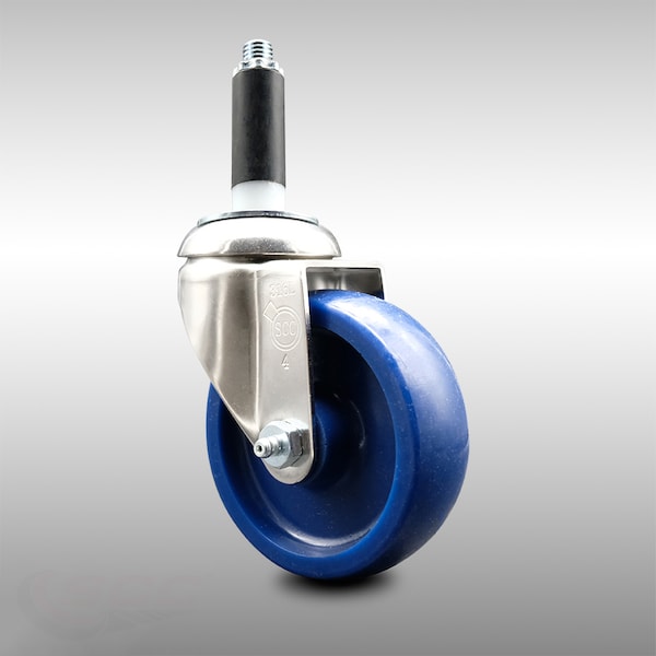 Listing is for one (1) Service Caster Series #20 3/4" expanding stem 316 stainless steel swivel caster with a 4" diameter by 1-1/4" wide solid polyurethane wheel capable of supporting 300 lbs./caster. When searching for a reliable and durable solution to your caster needs, consider Service Caster's 316 stainless steel solid polyurethane wheel casters. Built with 316 stainless steel, which contains additional molybdenum and nickel content, makes this caster more corrosion resistant than standard 304 stainless steel. Molded as one solid piece, the non-marking, non-marring polyurethane wheel is free from debonding, and will not flatspot, as can occur with comparable polyurethane wheels, ensuring a smooth and solid roll over long periods of time. Mounting options include top plate, bolt hole, expanding stem and standard and metric threaded stem sizes. These versatile casters are ideal for a wide range of applications, such as dollies, platform trucks, warehouse carts and freight terminals. Or ensure a secure ride for food service carts, hotel housekeeping carts, and industrial and commercial equipment.
