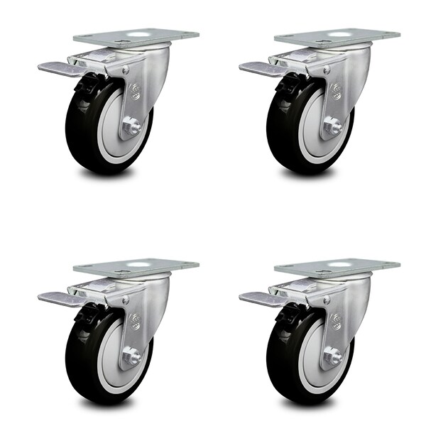 4 Inch Black Polyurethane Swivel Top Plate Caster Set with Total Lock Brake SCC