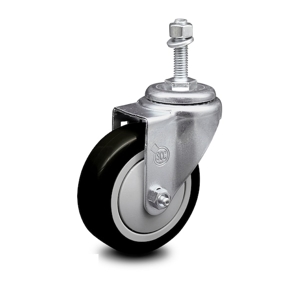 4 Inch Black Polyurethane Wheel Swivel 3/8 Inch Threaded Stem Caster SCC