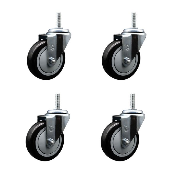 4 Inch Black Polyurethane Wheel Swivel 58 Inch Threaded Stem Caster Set Service Caster