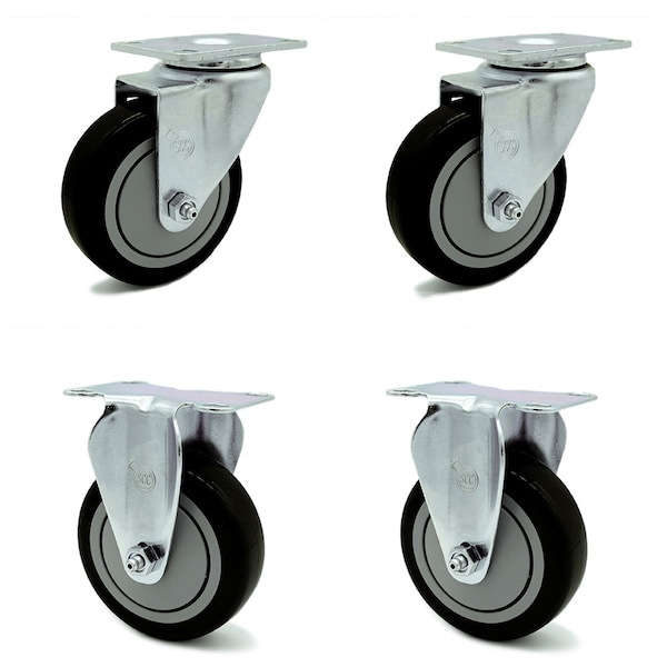 4 Inch Black Polyurethane Wheel Swivel Top Plate Caster Set with 2 Rigid SCC
