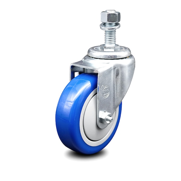 4 Inch Blue Polyurethane Wheel Swivel 12mm Threaded Stem Caster SCC