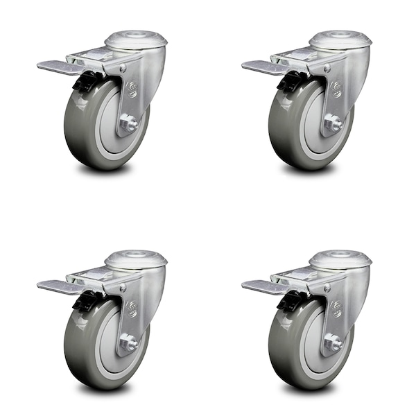 4 Inch Gray Polyurethane Swivel Bolt Hole Caster Set with Total Lock Brake SCC