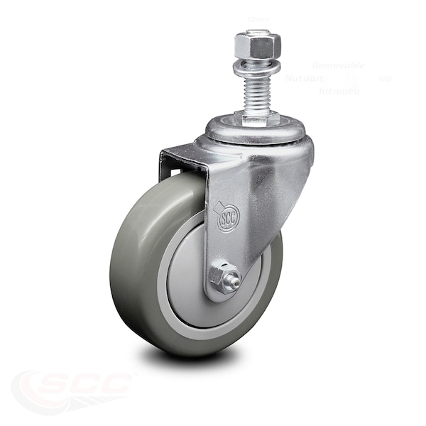 4 Inch Gray Polyurethane Wheel Swivel 12mm Threaded Stem Caster SCC