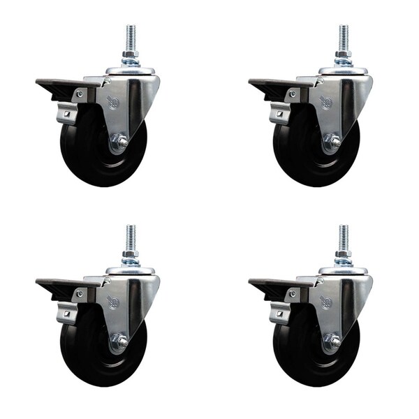 Listing is for a set of four 4 Service Caster Series 20 swivel casters, four 4 swivel 12 threaded stem casters with posi lock brakes, 4 diameter by 114 wide hard rubber wheels Supports a total weight of 1,100lbs 275lbsper caster When searching for a reliable and durable solution to your caster needs, consider Service Casters Series 20 hard rubber casters The Service Caster Series 20 is ideal for light and medium duty material handling, carts, equipment, and shop projects The hard rubber wheels not only provide higher load capacities and impact resistance than comparable wheels, but are also resistant to most chemicals and oils Mounting options include top plate, bolt hole and standard and metric threaded stem sizes All rolling on a finely crafted ball bearing design and zinc plated finish that provides durability under any condition and keeps you safely moving forward