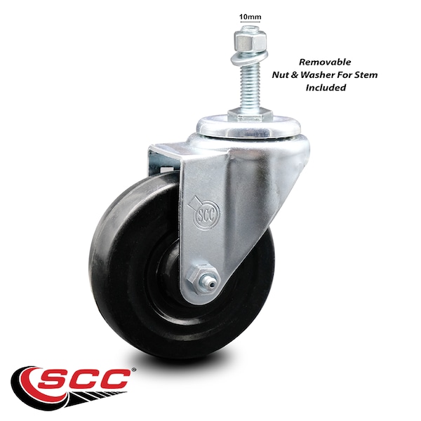 4 Inch Hard Rubber Wheel Swivel 10mm Threaded Stem Caster