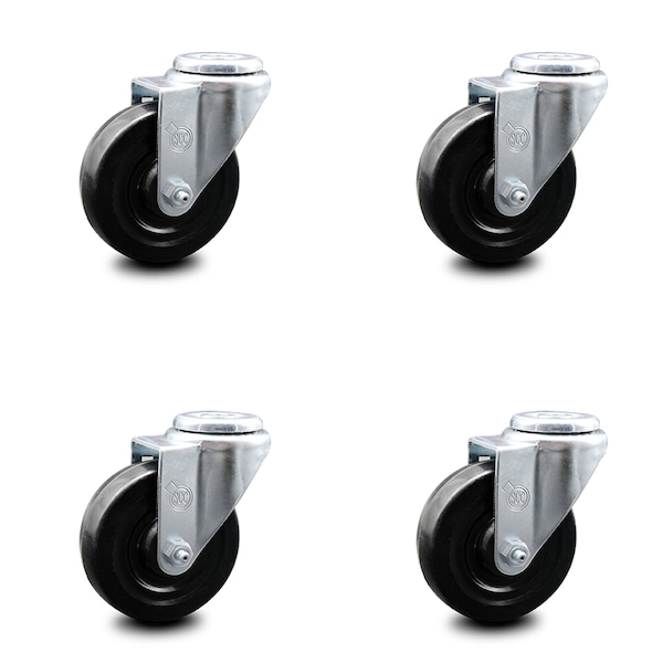 4 Inch Hard Rubber Wheel Swivel Bolt Hole Caster Set