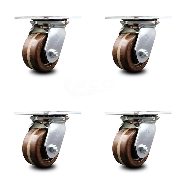 4 Inch Heavy Duty High Temp Phenolic Caster Set with Roller Bearings, 4PK
