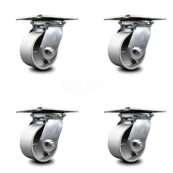 Listing is for a set of four (4) Service Caster Series #35 swivel casters with 4" diameter by 2" wide semi steel cast iron wheels capable of supporting a total weight of 4,000 lbs. (1,000 lbs. per caster). When searching for a reliable and durable solution for heavy duty projects, consider Service Caster’s Series 35 semi steel cast iron wheel casters. The Service Caster Series #35 is ideal for material handling, carts, equipment, and shop projects. The semi-steel cast iron wheel is built to withstand high capacity, heavy loads up to 1250 lbs and in temperatures up to 600°F. An economic choice over steel, semi-steel wheels are abrasion resistant and rugged. Finely crafted with a machined hub, wheel face and double ball bearing heat treated raceways, these versatile casters are ideal for a wide range of applications, such as dollies, platform trucks, warehouse carts and freight terminals. Or ensure a smooth and secure ride for industrial and commercial equipment. Even drywall carts, welding carts, and wall panel carts will be ready to roll on the Series 35, keeping you moving forward.