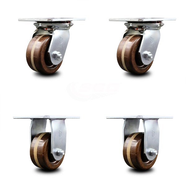 4 Inch High Temp Phenolic Caster Set with Roller Bearings 2 Swivel 2 Rigid SCC