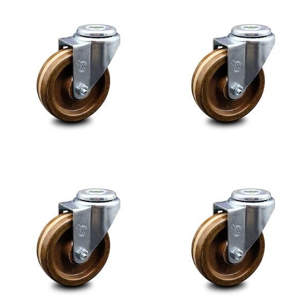4 Inch High Temp Phenolic Wheel Swivel Bolt Hole Caster Set