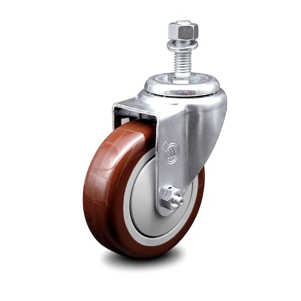 4 Inch Maroon Polyurethane Wheel Swivel 12mm Threaded Stem Caster SCC